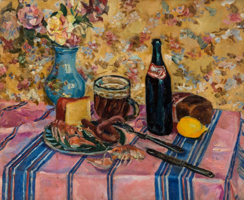 Экспозиция включает около 35 живописных работ, среди которых — натюрморты и пейзажи послевоенных лет, а также произведения его современников и учителей: Машкова, Кончаловского, Фалька, Решина, Вейсберга. Это окружение не случайно — выставка показывает живую ткань московской школы живописи, в которой Осмёркин был не просто участником, но и одним из формирующих голосов.