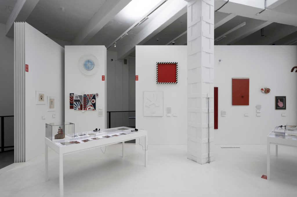 Архитекторы Александр Бродский и Наташа Кузьмина превратили зал в большой «развернутый журнал»: в центре — белоснежный куб, внутри которого размещены тематические разделы, соответствующие выпускам «А–Я» и его ключевым сюжетам: «Комплекс Малевича», «Филоновская мифологема», «Опять ангела нарисовал…», «Случайная встреча», «Окно расширенного смотрения». Это редкая возможность увидеть, каким живым и бурным был мысленный диалог между классиками авангарда и нонконформистами второй половины ХХ века.